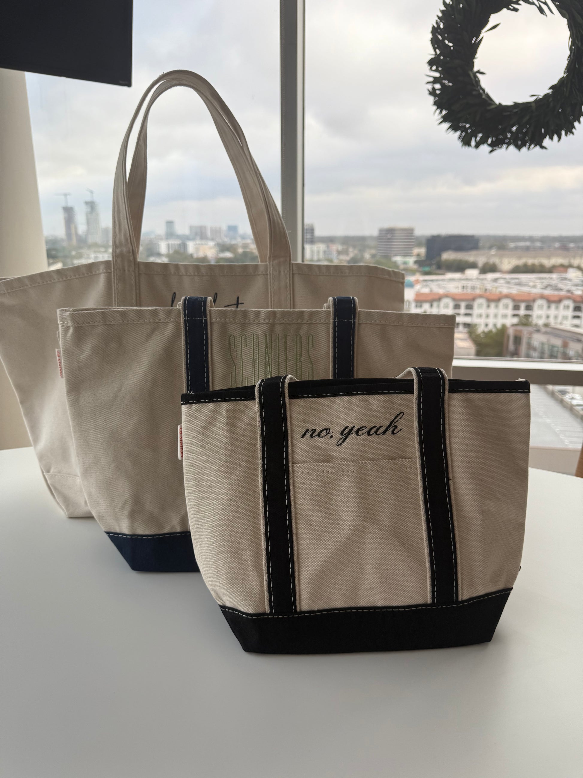 9.5" H x 13.5" W x 5.5" D Contrasting handles with a 5" drop.